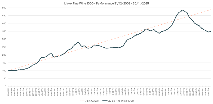 That longer frame is important. Over the past two decades, the Liv-ex 1000 has delivered a strong long-term performance profile, even while reminding investors that fine wine is cyclical, particularly after periods of unusually rapid appreciation.