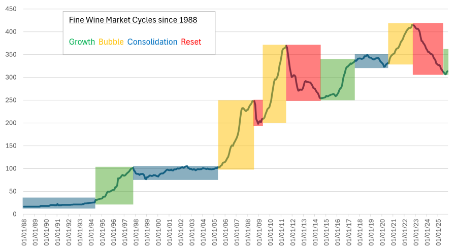 This cyclical resilience is one reason fine wine continues to attract long-term capital. The asset class corrects, consolidates, and then compounds.